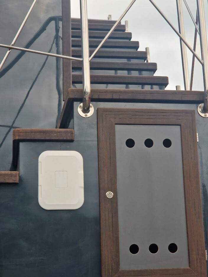 La terrasse supérieure est très spacieuse et permet de créer un véritable jardin. De plus, sur cette terrasse se trouvent des panneaux solaires qui alimentent un ensemble de batteries, ce qui confère au bateau son indépendance énergétique. Cependant, il ne faut pas oublier que chaque Campi Boat est avant tout un bateau, donc si ce modèle est en plus équipé de deux moteurs et d'un propulseur d'étrave, il sera parfaitement adapté pour naviguer sur la plupart des voies d'eau européennes.